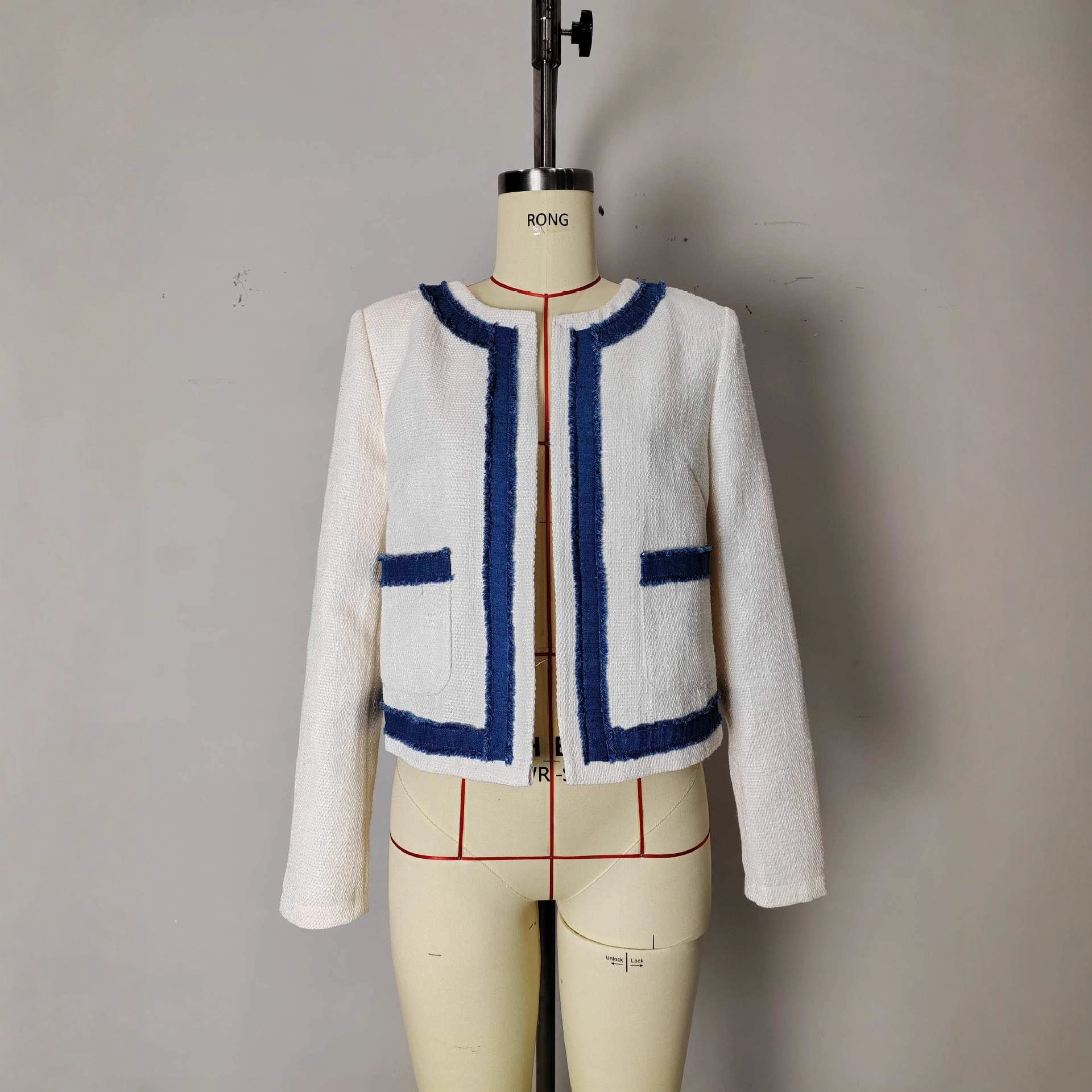 Temperament Crew Neck Retro Raw Edges Design Short Coat